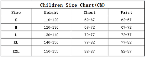 (3)Kids Size Chart(S-XXL):